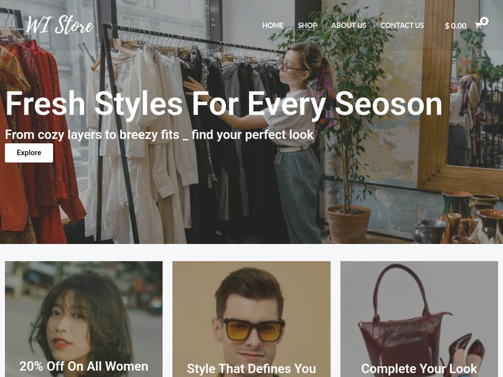 WIStore is a modern, multi page e-commerce website designed for a fashion store, featuring intuitive navigation, product categories for men, women and accessories and a smooth checkout process. Special features like promotional offers and cart system enhance the user experience, while the design ensures attractive visuals and a fully functional online store built with WordPress & Elementor